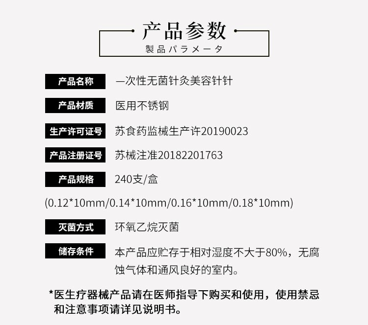大和汉一次性医用无菌透析纸装防滑钢美容针 240支/盒